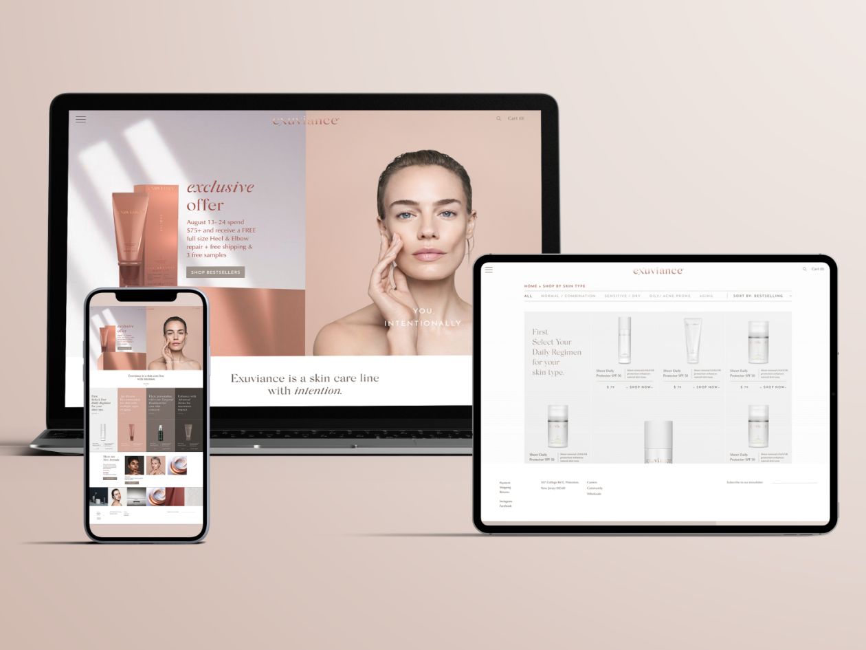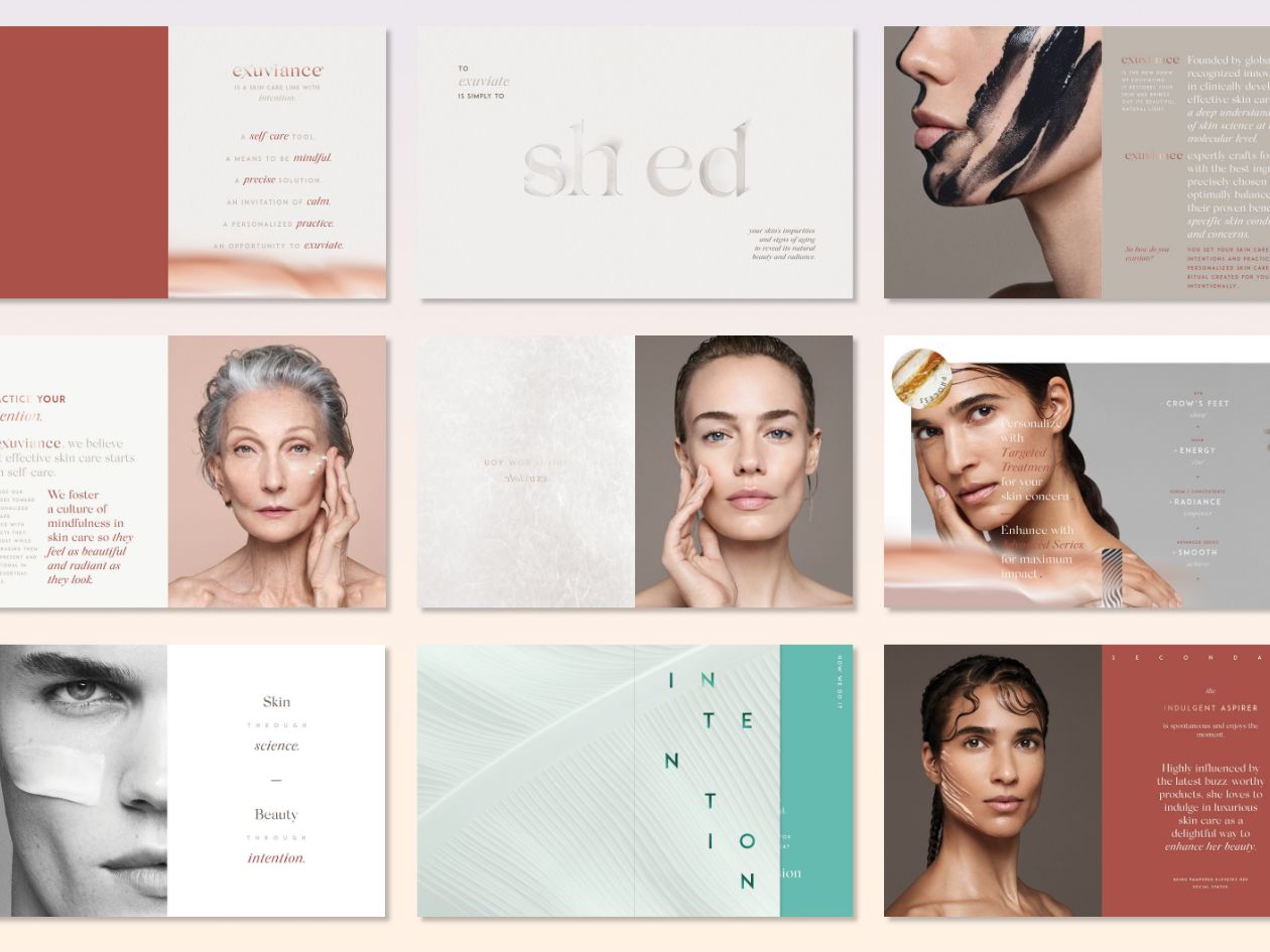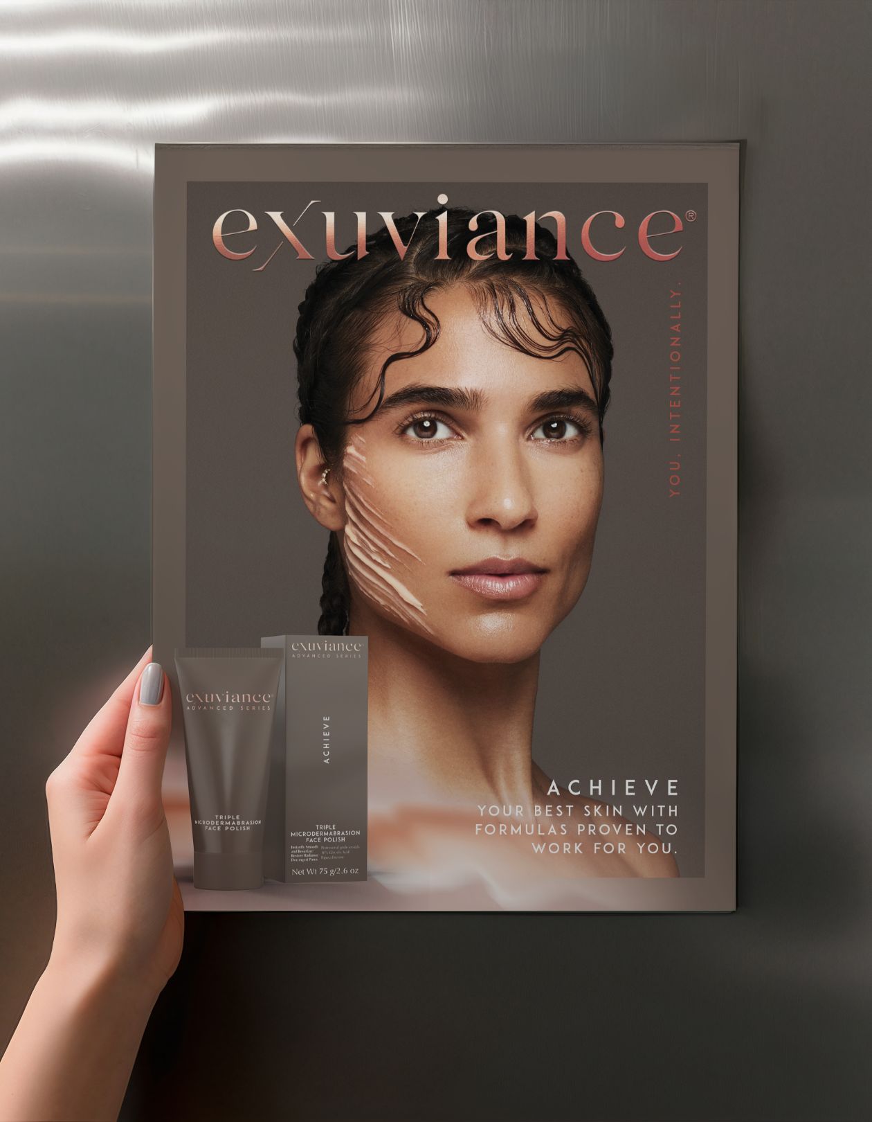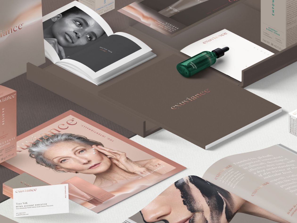 Introduced in 1998 by the scientists who discovered alpha hydroxy acids, Exuviance needed a brand refresh that honored its technical background while elevating it with contemporary, luxurious spa-inspired visuals and messaging.