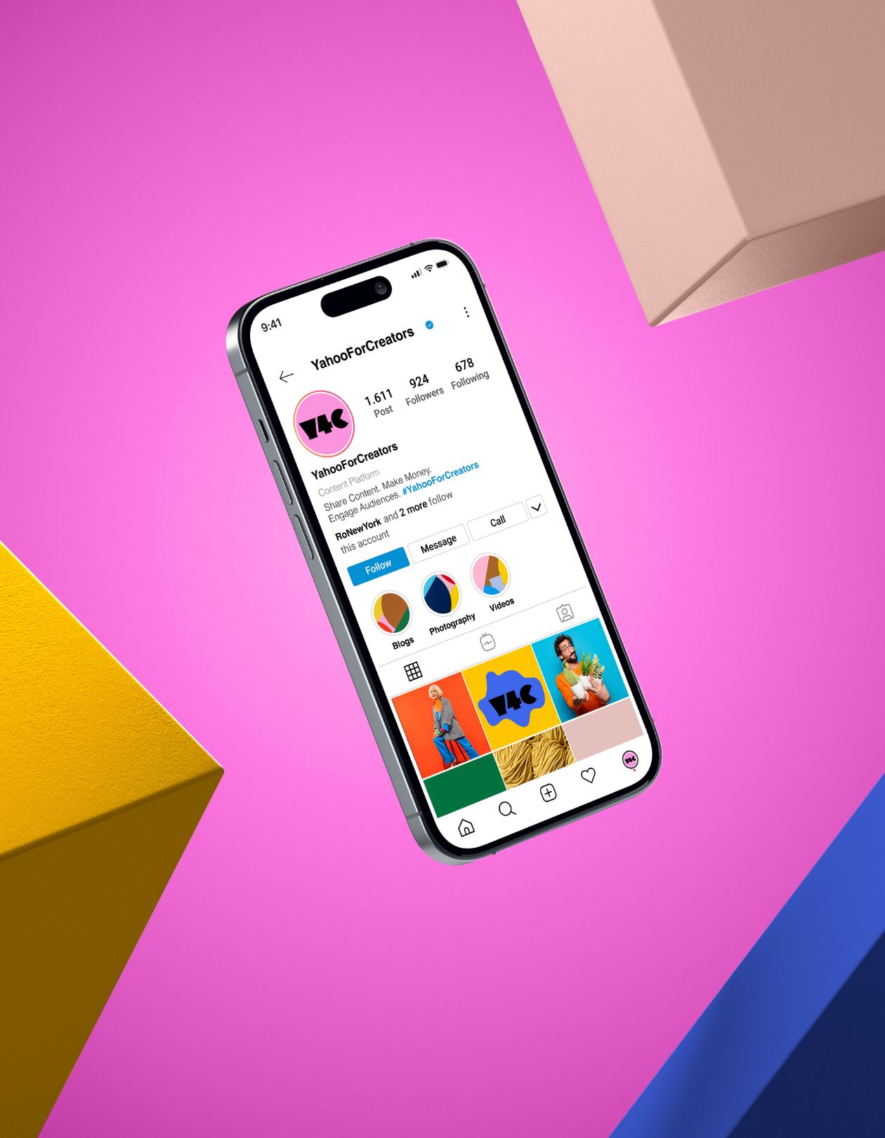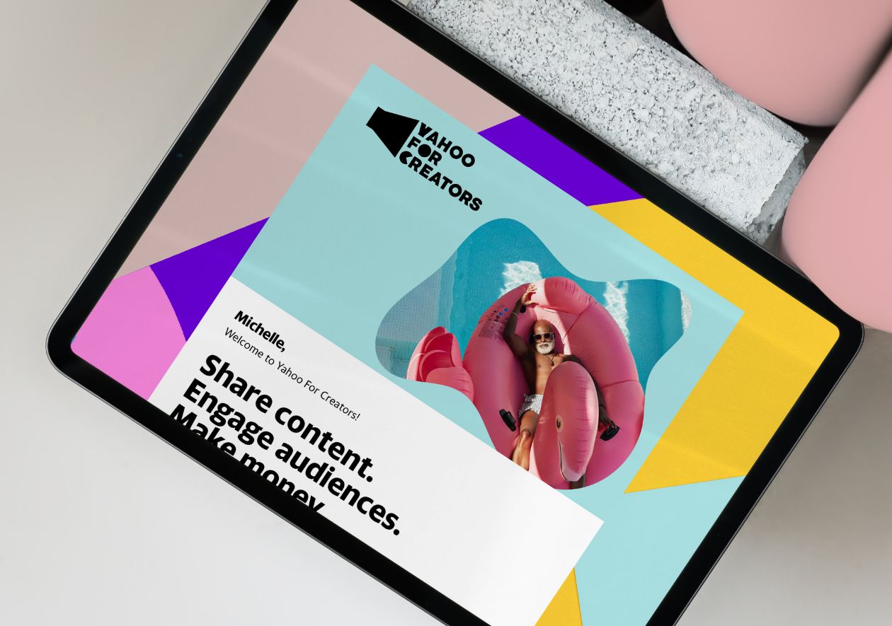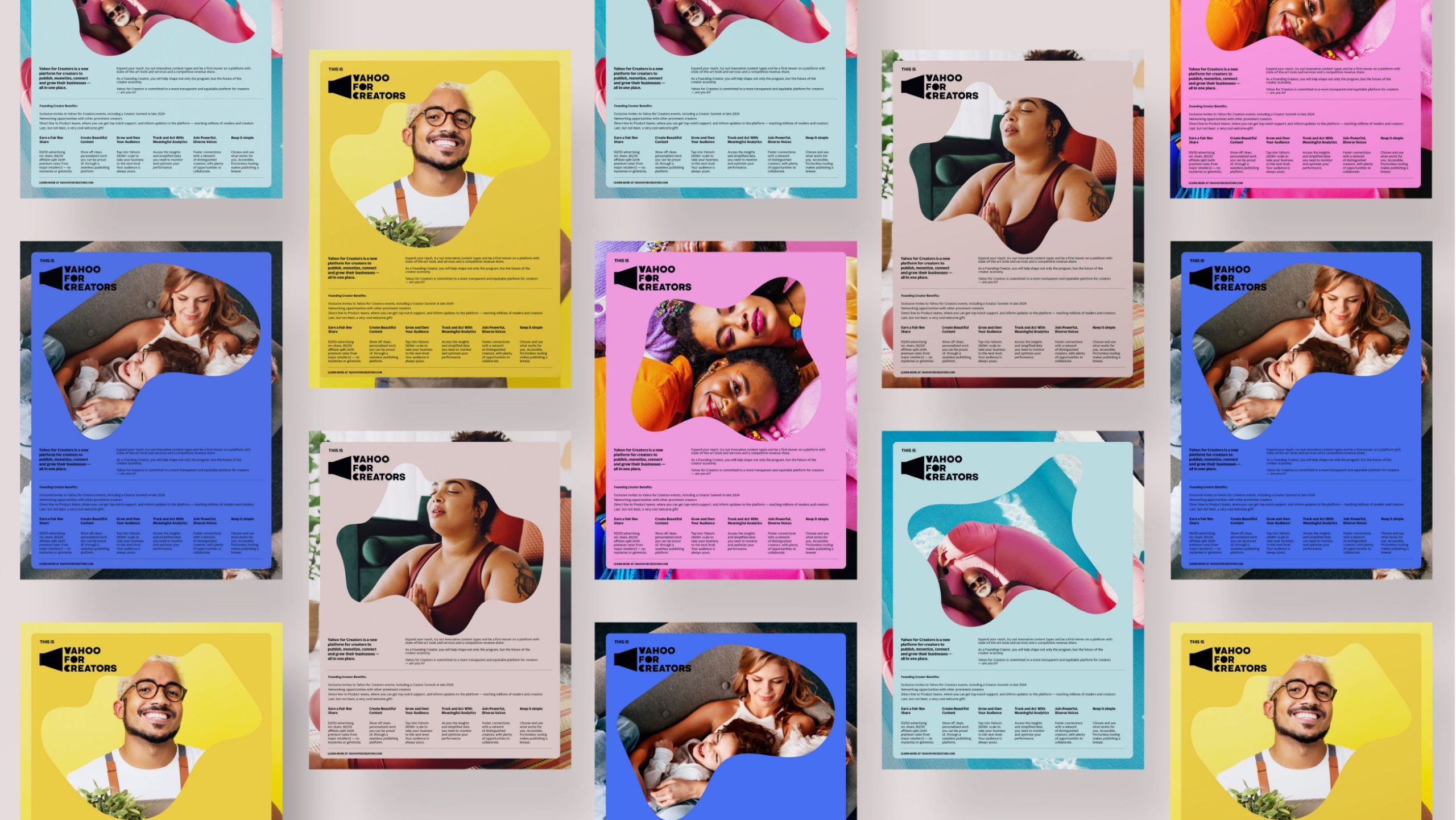 After developing Yahoo For Creators, a platform where creators can publish, monetize, connect, and grow their businesses, Yahoo tasked RO NEW YORK with creating the brand’s visual ID. This meant developing a system that was approachable, yet elevated, notably including the creation of the brand Y4C icon, which proved to be a highly versatile asset for both B2B and B2C designs We also established the brand’s exciting color palette, typography, and photography style, all which we implemented on select collateral.